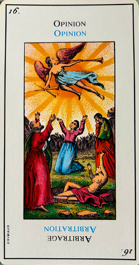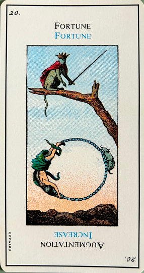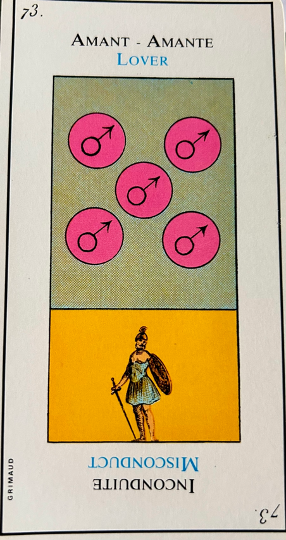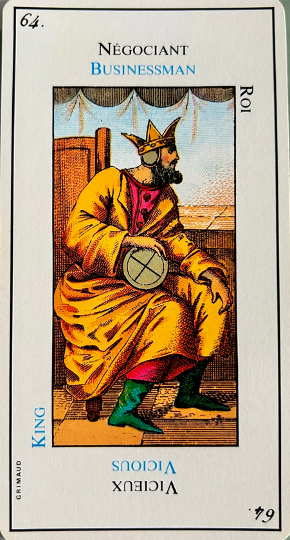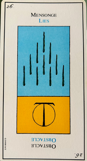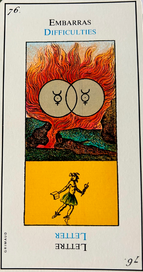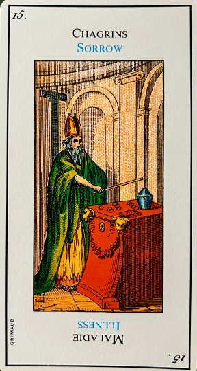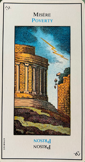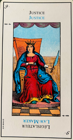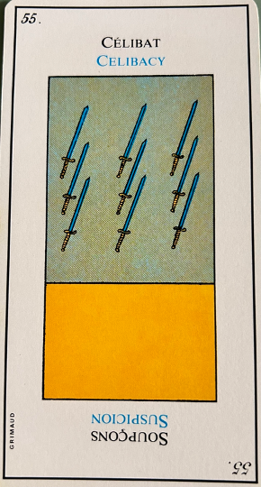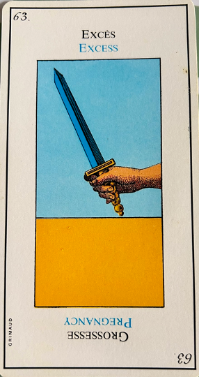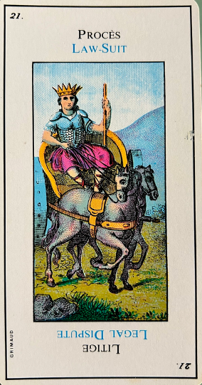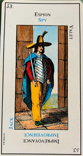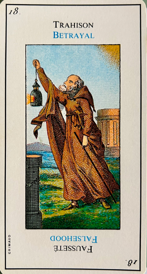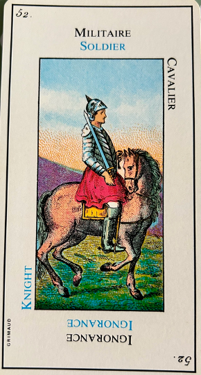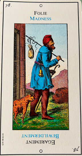 This card is correctly named “The Madman”. It inevitably heralds madness or an aberration. It is up to the consultant to be on his guard. This card corresponds to the unnumbered trump, The Fool.