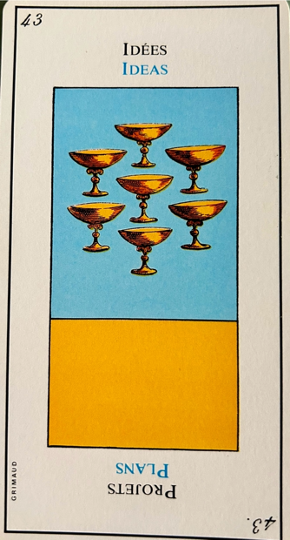 The GREAT ETTEILLA is composed of 78 cards, numbered from 1 to 78. The cards no 1 and n° 8 represent the man and woman consultants, but in a draw these cards n° 1 and 8 have also, like the other cards a particular significance. Each card carries with its title one or two general portents, synthetised into several words.
