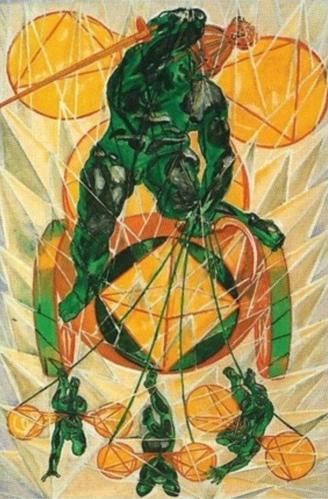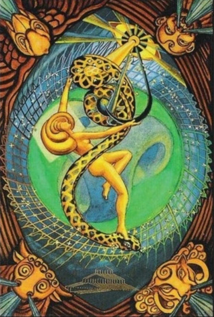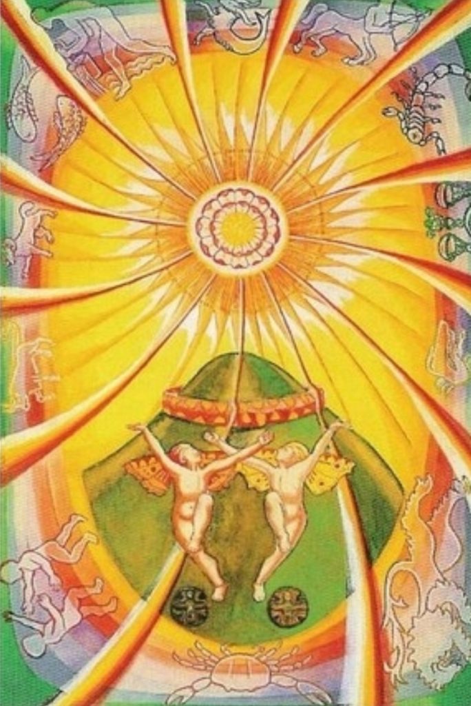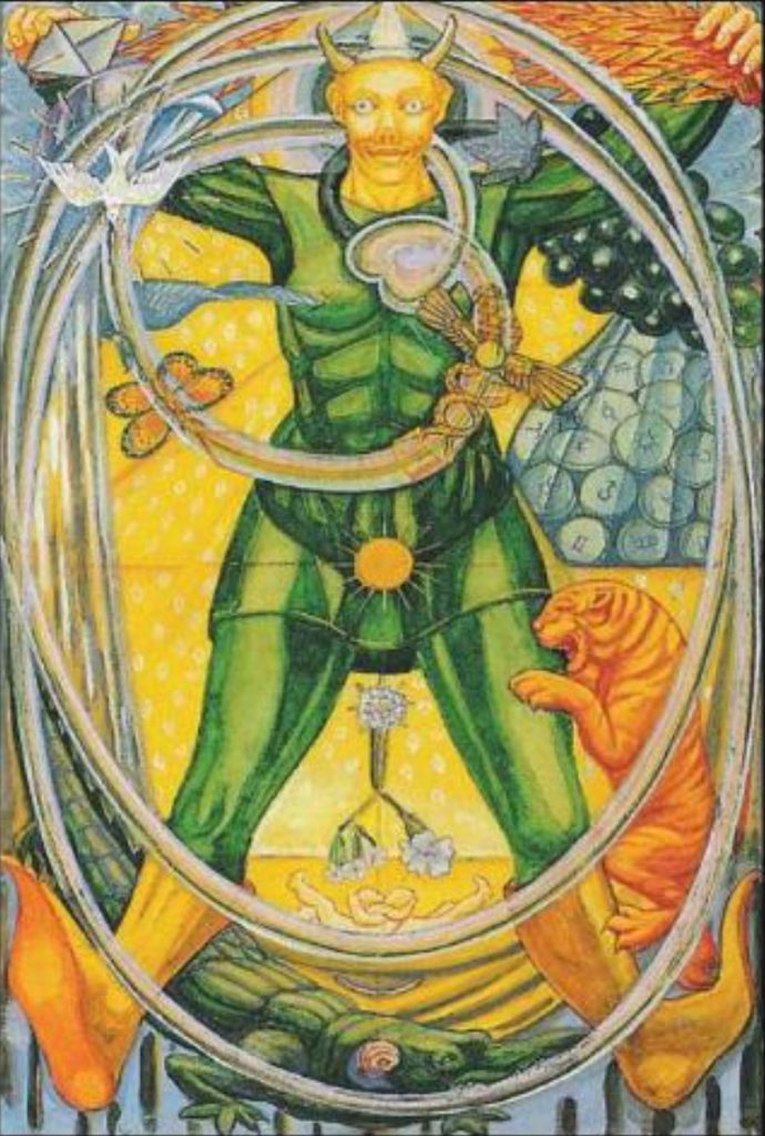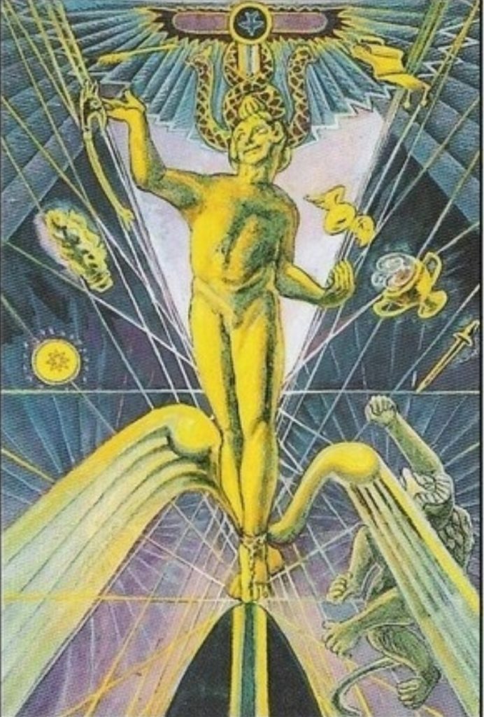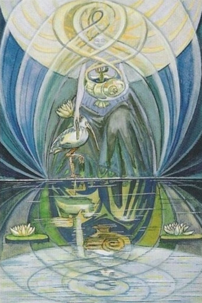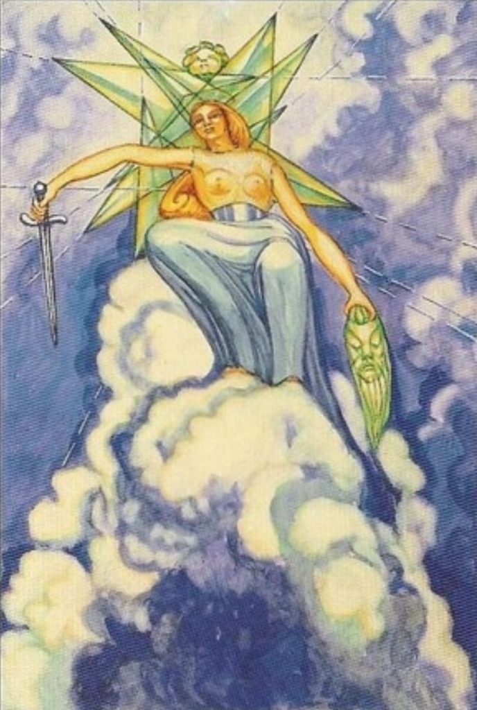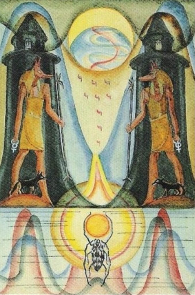 This card represents the creation of the world, so important was this secret that the initiates who used the tarot during the aeon of Osiris superseded it and called it the children of the voice, the oracle of the mighty gods – catchy huh. They were concerned with creating a new universe of their own using alchemy. The subject of this card therefore is analysis followed by synthesis.